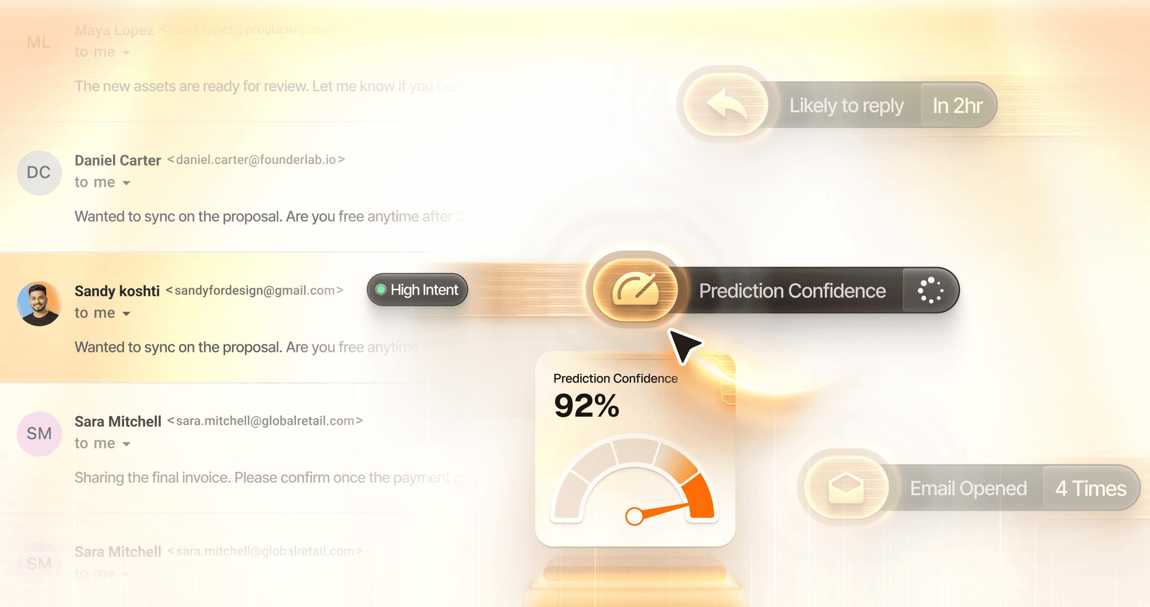 Ranks contacts instantly based on real engagement intent.